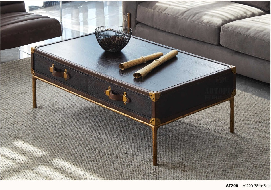 AT206 Modern Industrial Coffee Table with Leather Drawers